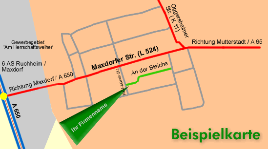 Zulässig ist bei einigen Anbietern eine Verlinkung auf die Adresse oder einen Routenplaner. Hier sehen Sie zwei Beispiele für einen solchen Link zu Map24.